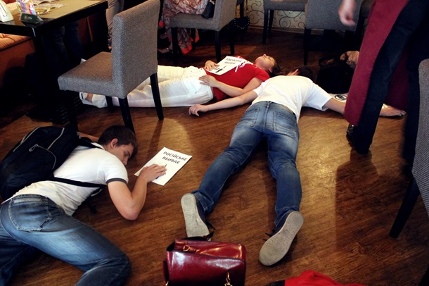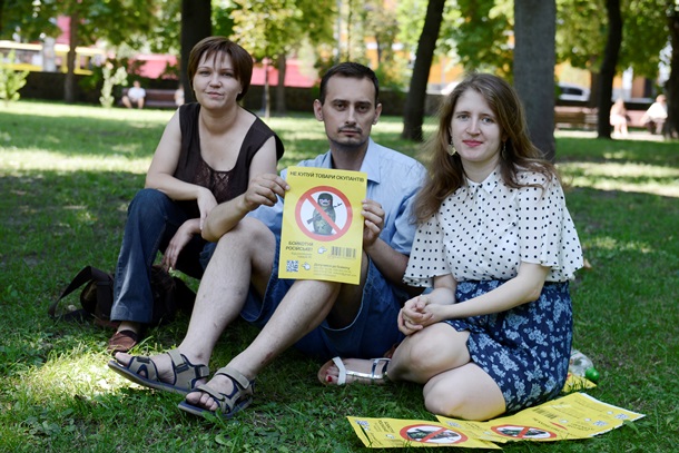 Продвигать идею отказа от продукции из РФ Надежда Прудяк, администратор сайтов, а теперь ещё и лидер движения бойкота российских товаров Відсіч, начинала с несколькими десятками единомышленников, а теперь их около 1 тыс. Это те самые молодые люди, что падают “замертво” в кафе и магазинах российских франшиз и брендов, проводя флешмоб Российское убивает.